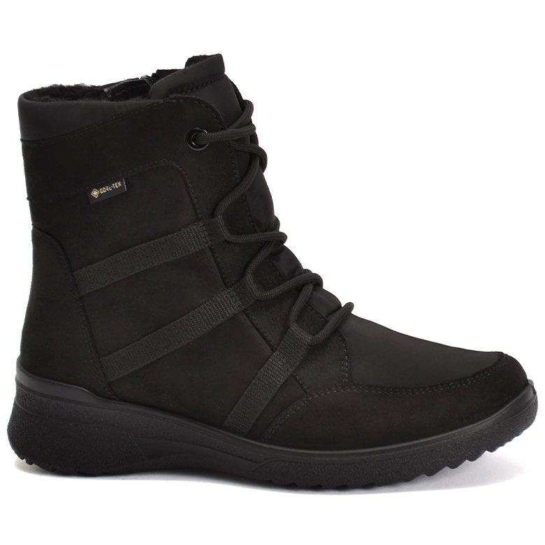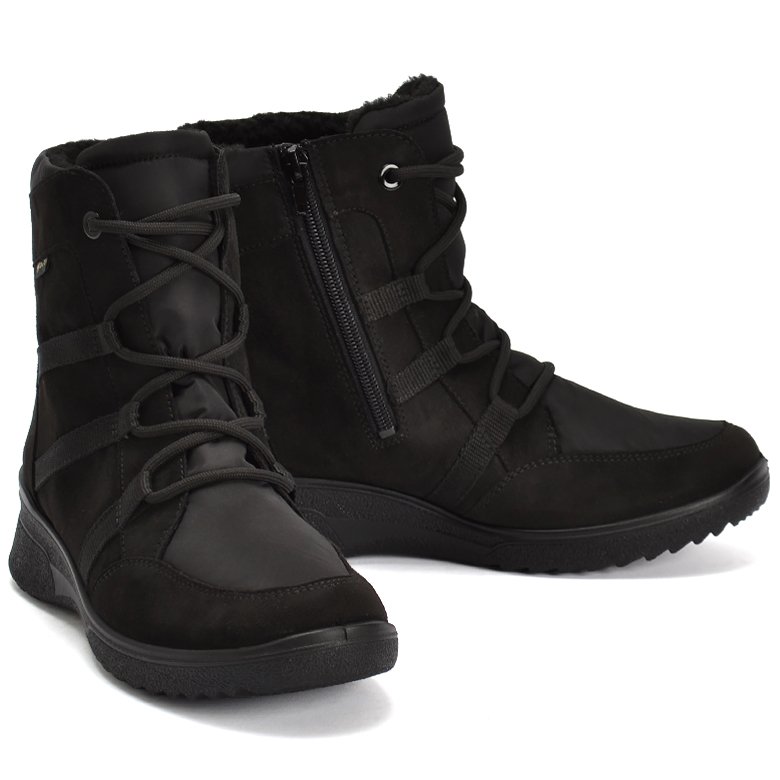 Low heel lace-up textile ankle boot with a convenient inside zip for ease of entry, waterproof Gore-Tex membrane and wool-blend lining. Features removable bamboo-blend insoles and injection moulded rubber soles for durability.