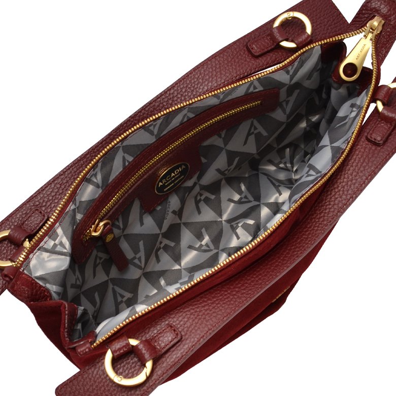 Features premium soft suede and pebbled grain leather and Arcadia Branded textile lining.