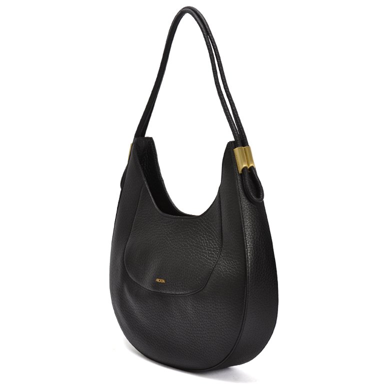 Medium sized chic everyday leather handbag featuring double handles for comfort, brushed gold hardware and Arcadia Branded textile lining.