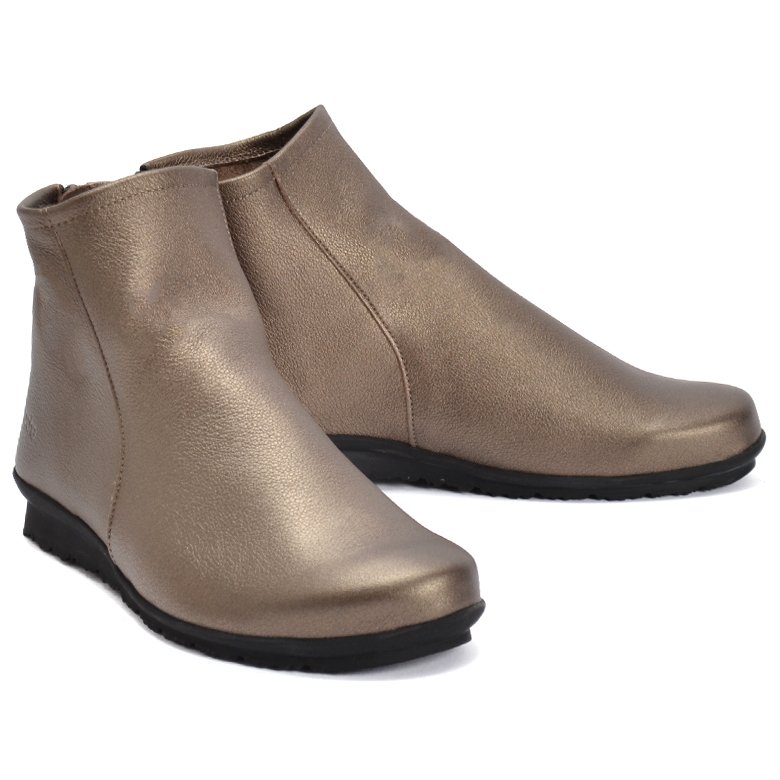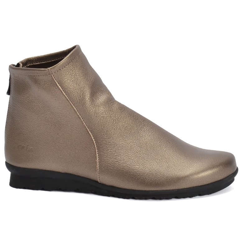 Flat soft leather ankle boot with convenient back zip for ease of entry and neat ankle fitting.