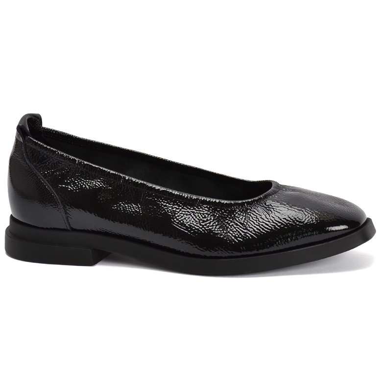 Flat slip-on leather ballet style shoe with a pull tab for ease of entry. This style has a partial leather lining with a leather sock.
