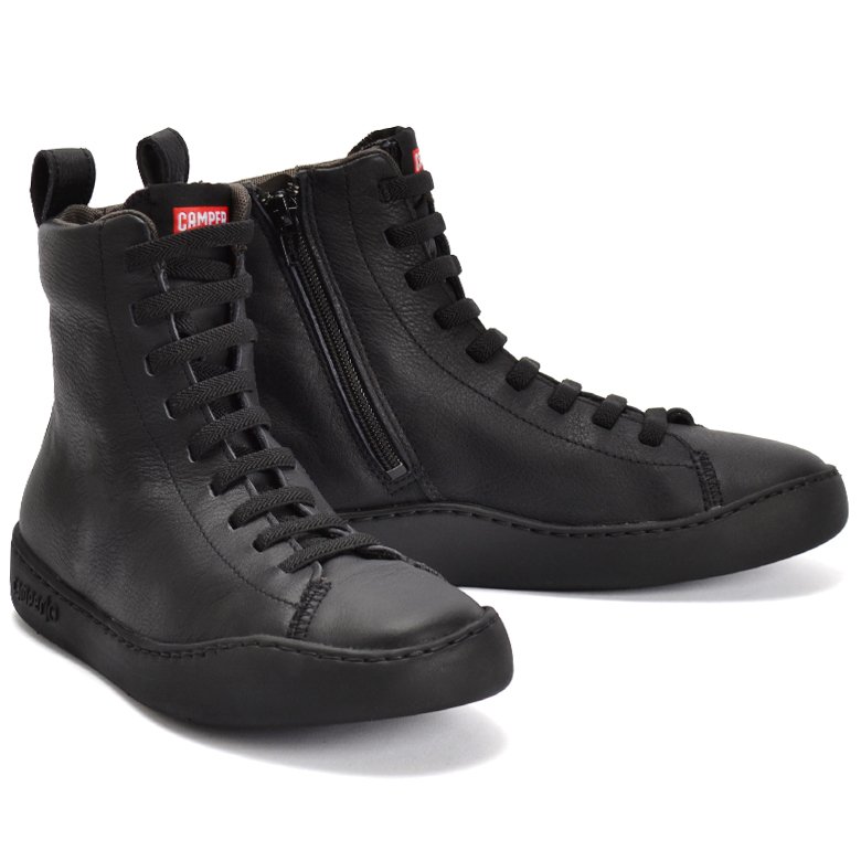 Classic Camper styled PEU TORUING high top leather sneaker with fixed length elasticated laces and a convenient inside zip and pull tab for ease of entry.