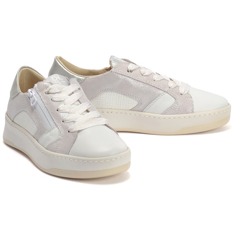 Low heel multi leather lace up sneaker with convenient outside zip for ease of entry and removable insoles that can be replaced with an orthotic.