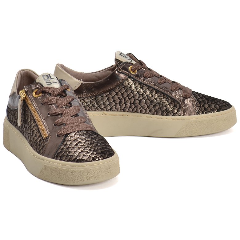 Bronze multi is leather with metallic leather detailing and soft leather detailing on the back of the shoe