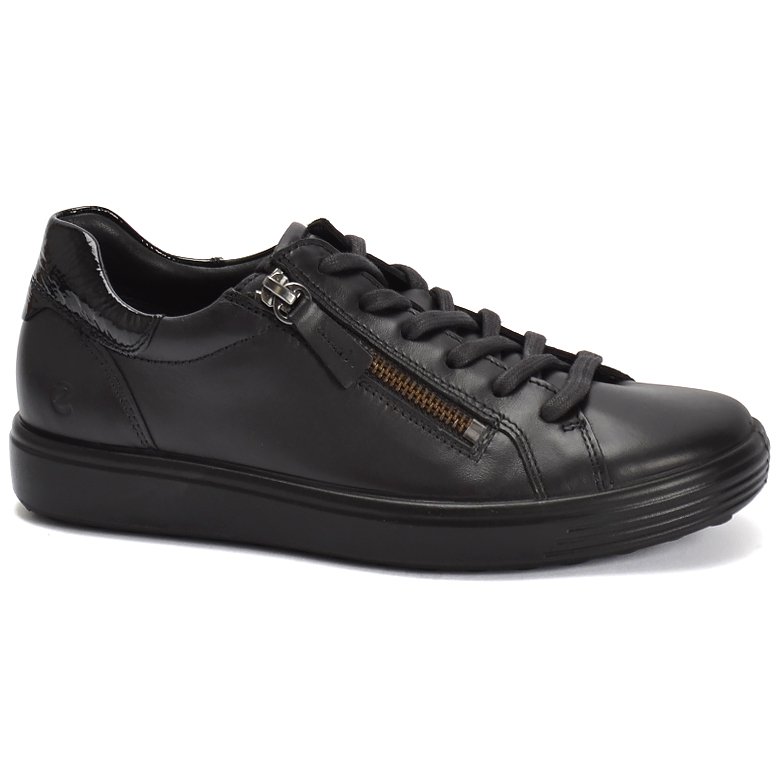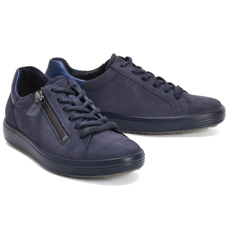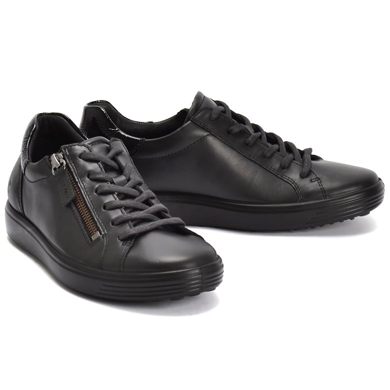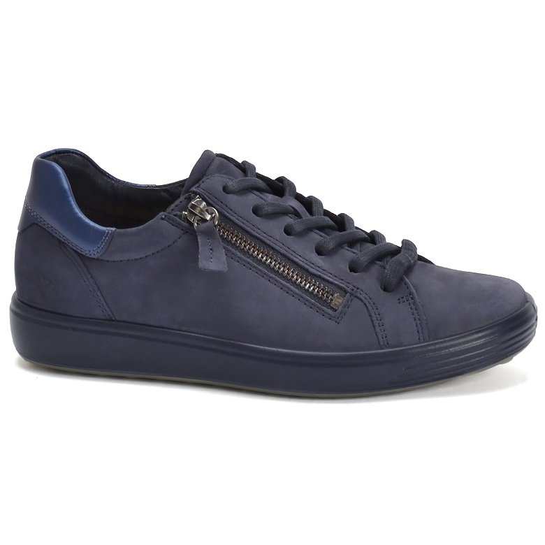 Casual leather lace up ECCO SOFT 7 sneaker featuring a convenient outside zip for ease of entry and a removable insole that can be replaced with an orthotic.