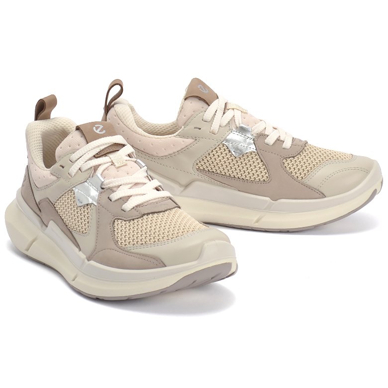 ECCO ladies leather lace up Biom 2.2 sneaker with breathable textile mesh panels. Features pull tab for ease of entry, comfortable padded collar, removable cushioned insoles and contrast metallic panels.