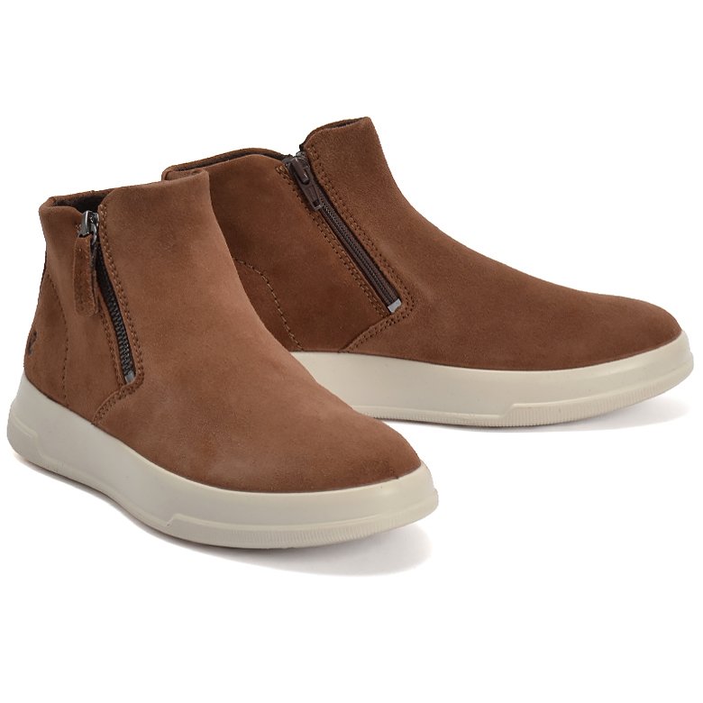 Contemporary suede leather ECCO MOVE high-top sneaker boot with two outside zips for ease of entry.