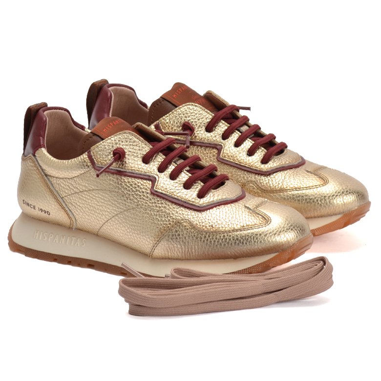 Slip-on metallic grain leather sneaker featuring elastic laces for ease of entry, pull tab and removable insoles that can be replaced with orthotics.