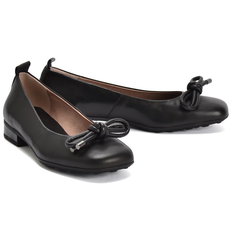 Low heel leather slip-on dress shoe featuring elegant bow detailing.