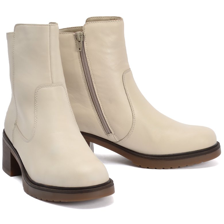 Mid block heel leather ankle boot featuring plush lambswool lining for added warmth and comfort and a convenient inside zip for ease of entry.