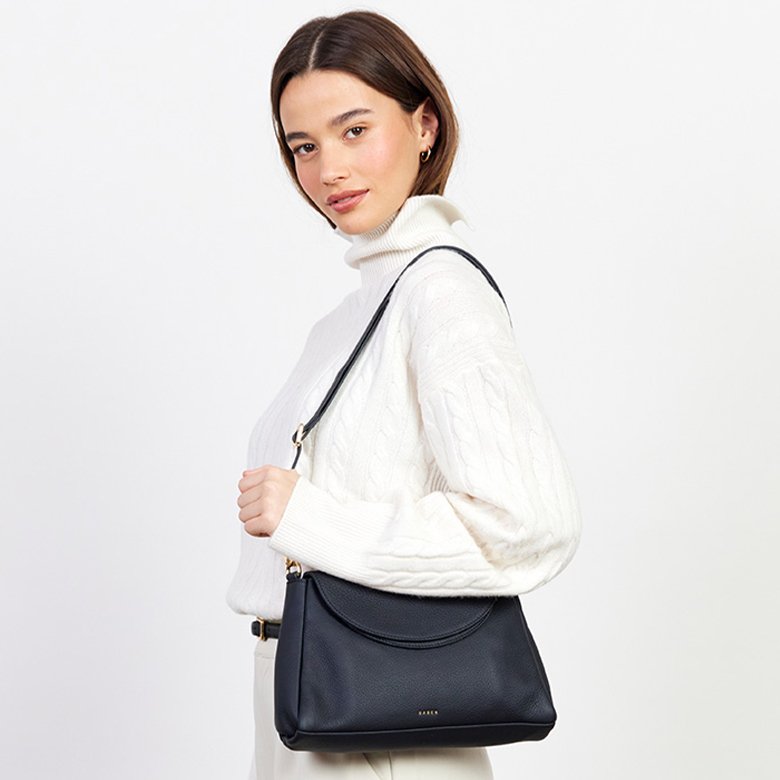 Small to medium sized functional leather handbag. Crafted from Saben's signature soft luxe leather with a softly draped silhouette. Designed with foldover panels Beckett balances relaxed styling with refined detail. The detachable shoulder and crossbody straps give you freedom to wear it your way, while clever features like the spacious back pocket with magnetic closure and internal zip compartment keep your essentials secure. Beckett is perfectly functional and elevated in equal measure.