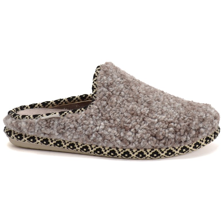 Slip-on slide textile slipper featuring a plush sheepswool textured upper and a durable anti-slip rubber sole.